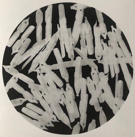I produce screen prints, lino prints, woodcuts, and make casts in a variety of materials. I also like to “print by repetition” – cutting paper, repeating handwriting – and to cast sculptures in clay and other materials.